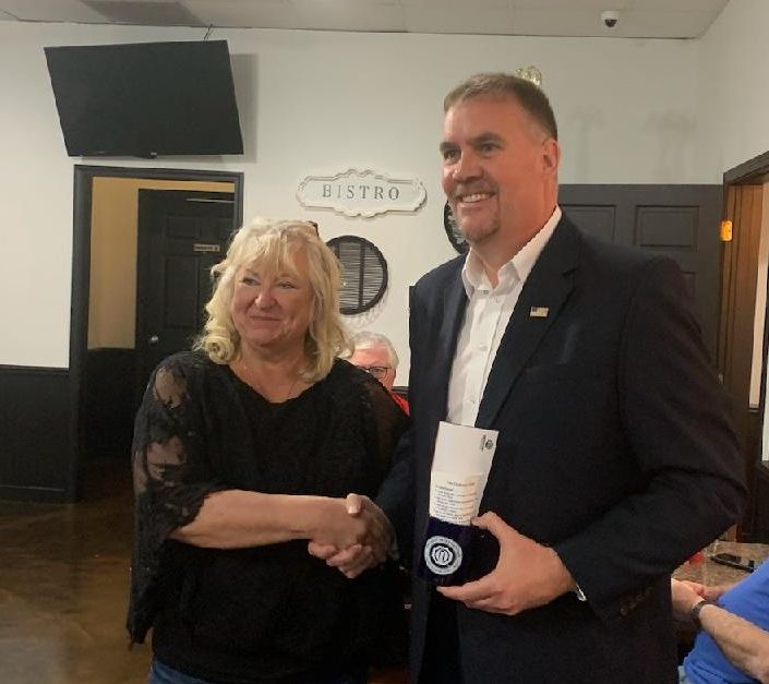 Steve Schlott introduced our guest speaker, Flushing Mayor Joe Karlichek (see photo below), who gave a good demonstration of his community investment and communication skill in the presentation this morning. He talked about the style and structure of leadership in Flushing; financial status, gains, and challenges; priorities of infrastructure and public safety; and his “Find a way to say ‘yes’!” mantra. He also announced that he will complete this last term as Mayor and move in the direction of County Commission for his expression of leadership.