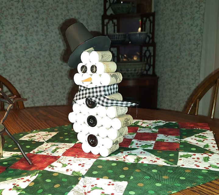 Member Jim Reigle brought some of his “cork creations” – see photo below – to breakfast this morning (reporting that “My therapy is going well!”) and offered them to interested parties in exchange for donations to Sleep in Heavenly Peace, for whom Club members are scheduled to deliver/assemble 6 beds after today’s meeting. Jim paid fines for trying to convince us that he only obtained the wine to get material for his crafts. (In truth, he accepts donations of used corks from anyone who offers them!)