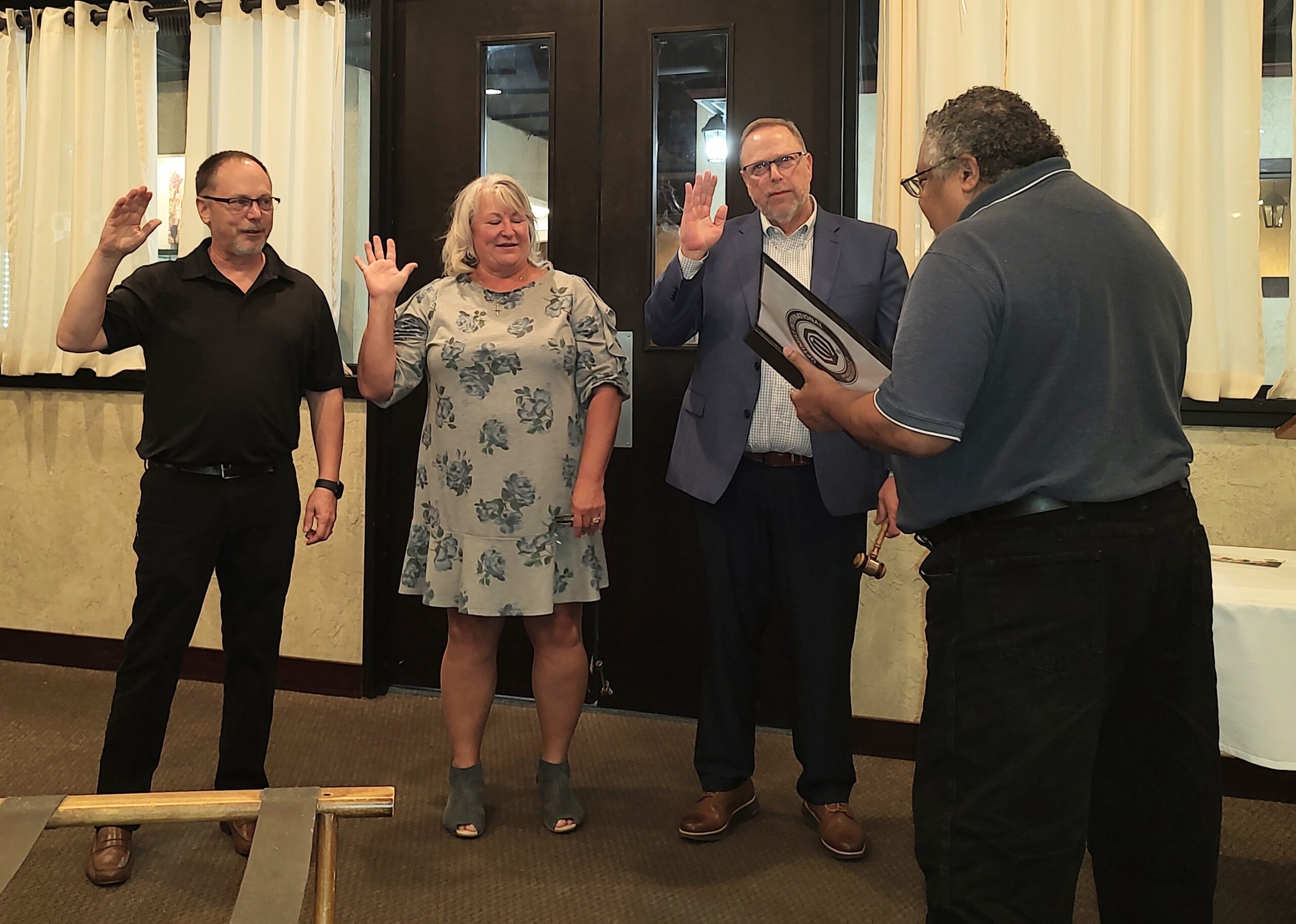 Plans, arrangements, and food for this evening’s Optimist Club Installation Banquet at Ruggero’s were reiterated and it was a great evening! (See photo below for the swearing in of Officers by Governor-Elect Bill Reaves: [left to right] Jeff Dennings as Secretary/Treasurer; Cindy Sullivan as Immediate Past President; and Rich Lewis as Club President for the ‘25-’26 Optimist Year; and Bill). We have a good Board, an excellent record of events, activities, and membership expansion for this past year, and exciting opportunities ahead.